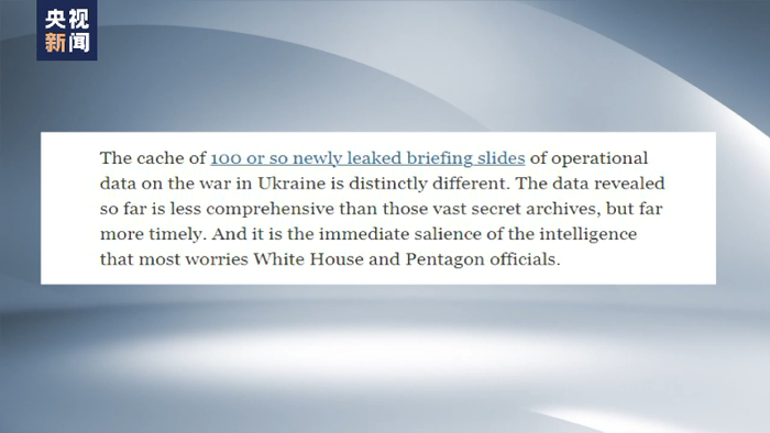 此外,据《纽约时报》报道,本次文件泄密与美国以往的泄密事件有所不同。相比庞大的机密档案,迄今泄露的资料虽不那么全面,但时效性却强得多。报道称,有些文件看起来“出炉”只有40天,且披露了一些最敏感的信息,比如乌克兰防空系统的部署等。