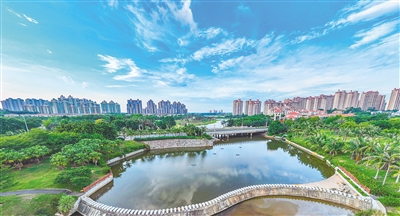 将生态环境优化治理同环湾区开发建设有机融合,使环湾区的蓝绿比例达到70%,达到国际一流宜居城市的标准,让环湾区成为践行“绿水青山就是金山银山”的儋州样板。