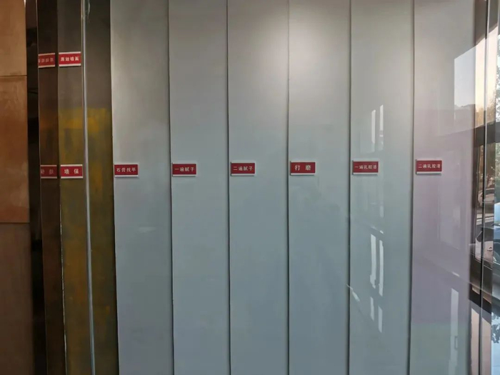 在施工中,装修公司采用德系工艺,细节把关毫不含糊。在水电改造环节,水路走顶更清晰,下水噪音处理更安静。在本以为很简单的墙面装修中,施工团队也要进行7步工艺。