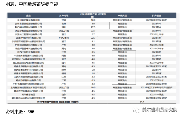 中国硫酸镍湿法中间品及高冰镍供给大于需求,原料端并不是限制硫酸镍产量因素。此外,印尼湿法及火法项目投建如火如荼,原料供应紧张问题2023年将有所改善
