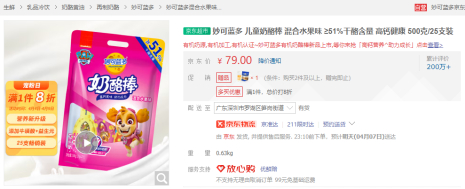 针对低价策略,《港湾商业观察》查询京东购物平台,妙可蓝多京东旗舰店儿童奶酪棒单价平均为15.8元/100g;百吉福、奶酪博士同类产品单价平均为14.4元/100g、14.69元/100g。妙可蓝多价格均高于二者。