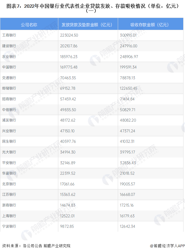 银行业代表企业贷款发放、存款吸收情况:工商银行规模最大