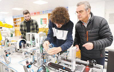 几年来,卢卡斯3次带队走访中国多家职业教育培训机构,对中国职教培训理论、系统和设备都有了深刻的了解。他指着教室里的实训设备说,中方教学以实际工程项目为导向,注重实际操作和安装,培养学生的科学探究能力和问题解决能力;葡方则擅长设计编程和系统调试。“在鲁班工坊里,双方的优势相结合,学生们将理论、设计和操作融会贯通,能力方面有所互补,进一步拓展了合作空间。”