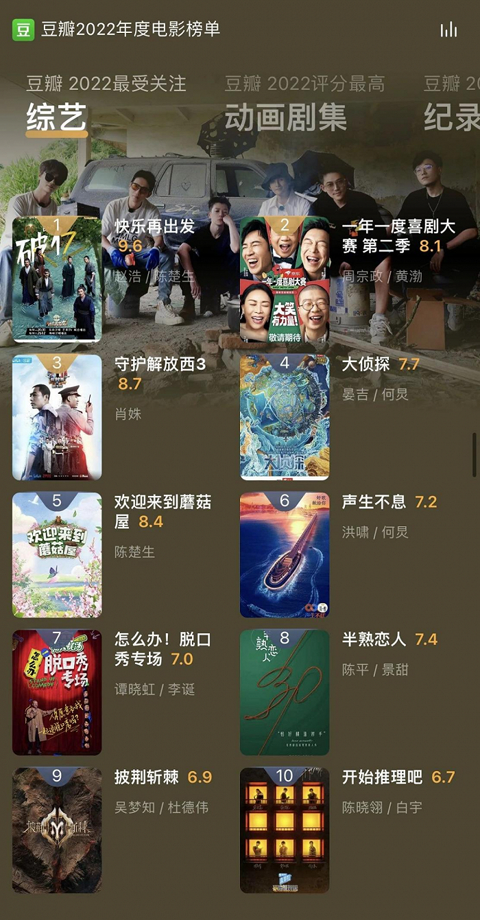 《百川综艺季》豆瓣开分7.1,如表4所示,截至目前3736个豆瓣用户给出了6.8分,好于大多数短综——因评分人数不足尚未开分的,以及过半已开分的。口碑处于及格往中上的水平,但在去年的短综中算不上优秀:同平台的《全力以赴的行动派》7.7分、《我在岛屿读书》高达9.1分,B站的《所有女生的offer2》《守护解放西3》《非正式会谈7》均超过了8分,《守护解放西3》还进入豆瓣2022最受关注的综艺节目行列,也是该榜单中唯一由中短视频出品、播出的综艺。