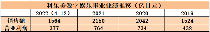 2022年二、三、四季度(2022.4.1-2022.12.31),Konami包括TCG业务在内的数字娱乐事业,销售额为1564亿日元,同比增长1.6%;营业利润377亿日元,同比下降32.3%。
