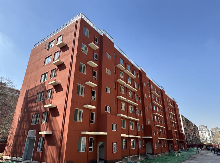 如今,历时两年多的重建,114号楼已经大变样。老楼一改过去墙皮开裂脱落的“沧桑”模样,赭红色的楼体颜色带着复古范儿。“我都80多岁了!这个岁数还能住上新房以前想都不敢想。”翁阿姨在参观完小区的建设情况后,竖起了大拇指。
