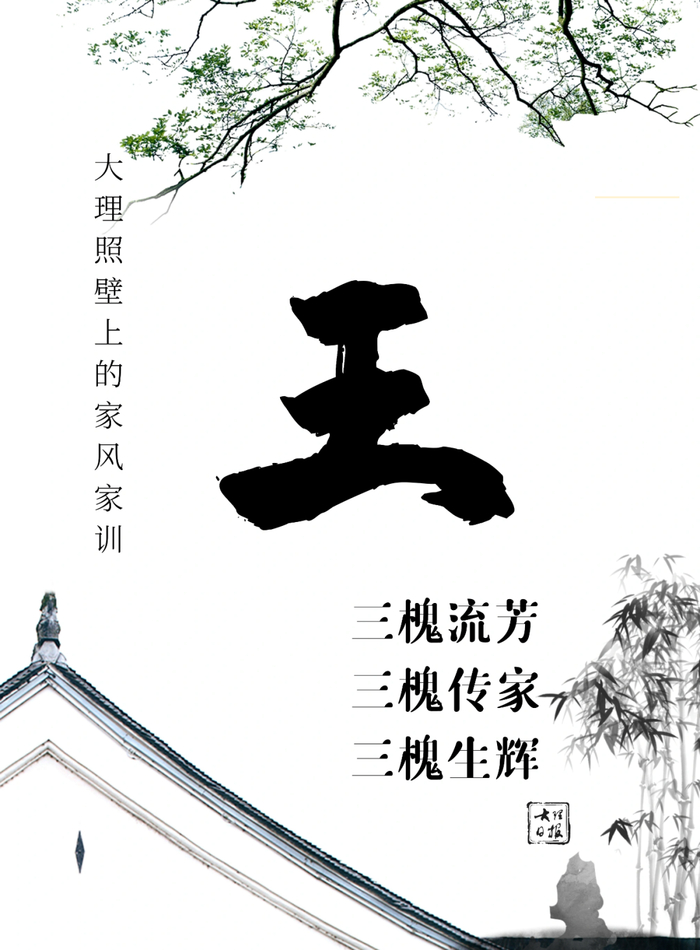 极少数大理王姓照壁上也书写“太原传家”。这源于东汉末王昶,他官至骠骑将军、司空,位列三公。他撰著《治论》二十多篇,又著《兵书》十几篇,探讨奇正并用的战术。他的儿子王浑、王深,分别官至司徒和冀州刺史。父子同列三公,出将入相,这个家族在魏晋南北朝四五百年时间里,始终高居顶级门阀士族行列,与其他六大家族并称“五姓七高门”,“天下王氏出太原”的美誉流传至今。