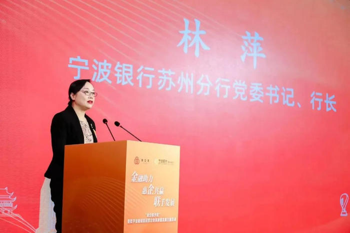 活动伊始,宁波银行苏州分行党委书记、行长林萍致欢迎辞,介绍了宁波银行以及宁波银行苏州分行发展情况,强调了宁波银行在金融科技领域的创新性探索。近年来,宁波银行顺应“数字化、系统化、智能化”转型趋势,持续加大科技力量配备和科研经费投入,相继推出了“财资大管家、外汇金管家、政务新管家、票据好管家、投行智管家、企业APP”等金融科技产品,服务了数百万家企业,宁波银行还在陆续推出“企业之家、物业之家、设备之家、商协会之家”等开放式平台,更好地赋能客户主业及其产业链建设。