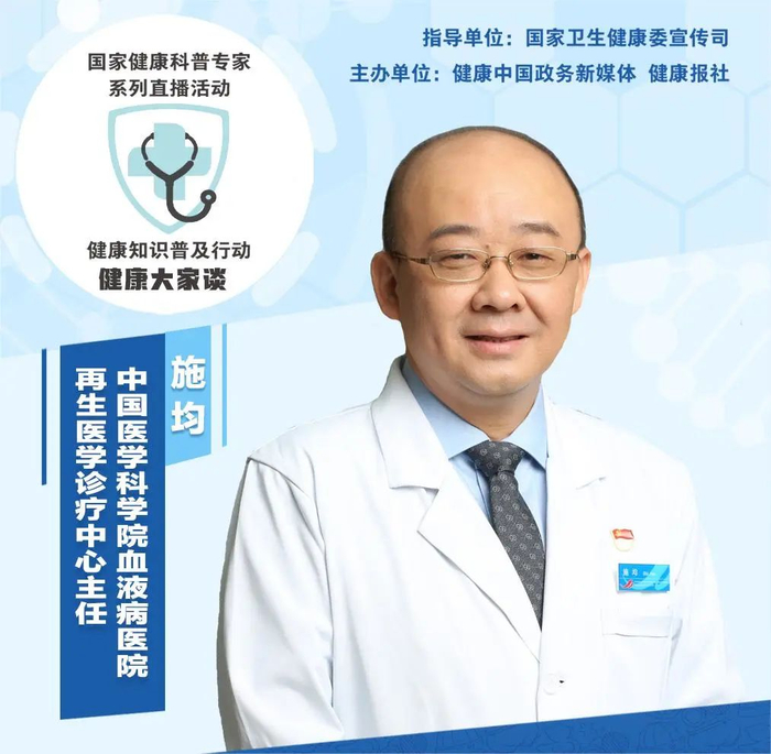 近日,国家健康科普专家库专家、中国医学科学院血液病医院再生医学诊疗中心主任施均做客“健康大家谈”直播间,带大家一起了解关于贫血等血液病治疗的相关知识。