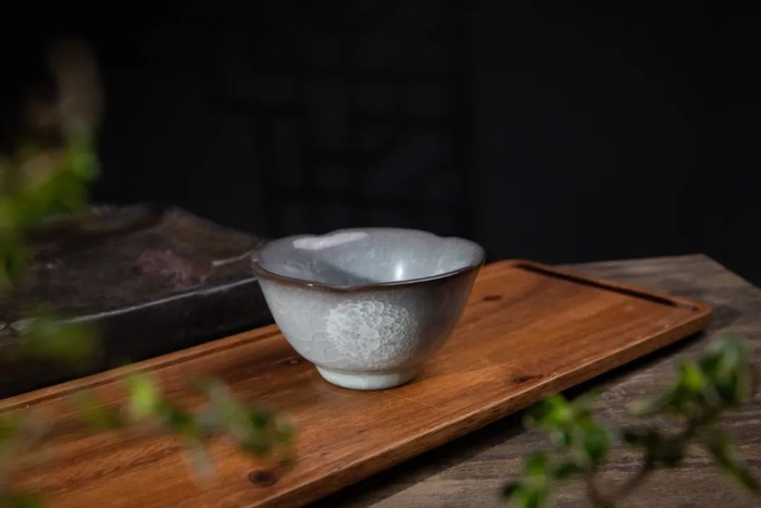 手握这款传世冰花六方杯,貌似牡丹一般的冰裂开片,肆意绽放在杯身与杯底,美得惊心动魄。