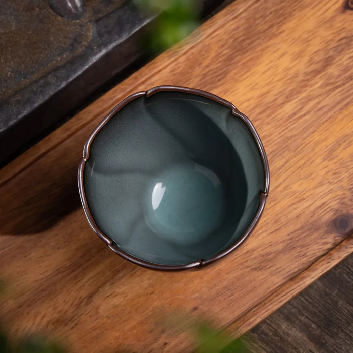 如你所见,这款青点冰花葵口杯由郑老师自主研发,无论是釉色还是做工,都极具个人特色,别人想模仿都模仿不来。