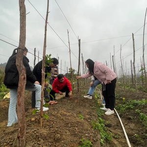 以村集体试种成功获收益为例,党员、村干部、驻村工作队员积极动员该村村民以村集体统一购苗、村民出地、付部分定金(筛良种、稳品质),党员、村干部免费提供种植技术指导,村民种植百香果成熟采摘后由村集体统一销售(保销路)以这样一条龙服务的模式,吸引了该村28户、脱贫户(含监测户)5户加入到了“甜蜜事业”队伍中,村民种植95亩,村集体种植15亩,该村共计110亩。今年1月购买的1.2万株幼苗在电六村的温室大棚里培育,3月初移植后分别用平棚式栽培和篱笆垂帘式两种模式种植。