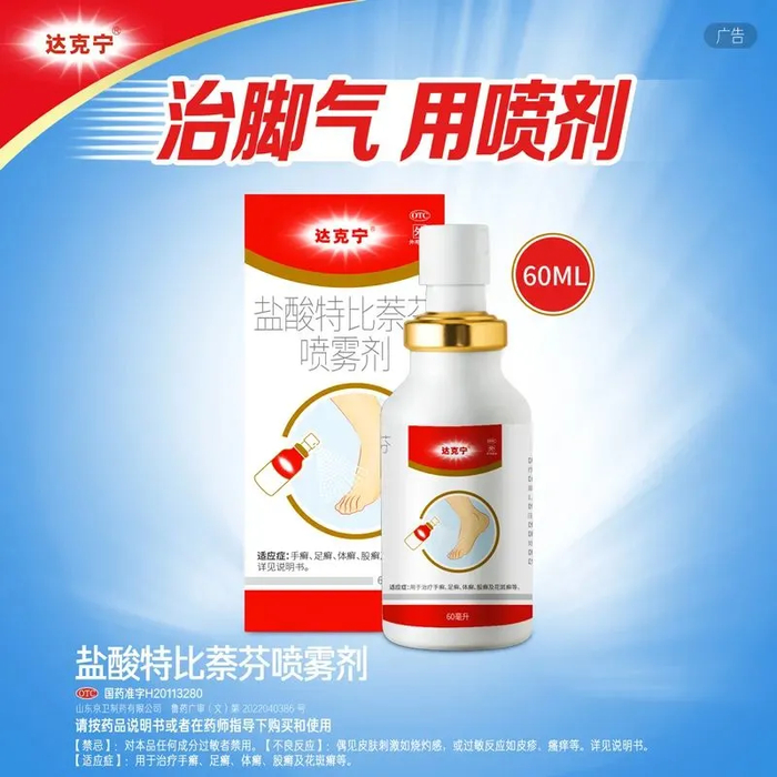 它的有效成分是 1% 的特比萘芬,每天喷 2~3 次,疗程 2~4 周: