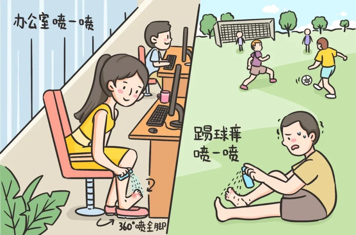 想避免抠脚尴尬,可以白天用喷雾、晚上用乳膏和散剂。