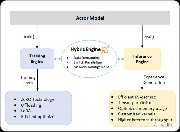 为了应对这些挑战,研究者将DeepSpeed训练和推理的全部系统能力组成了一个统一的基础设施,即混合引擎(Hybrid Engine)。