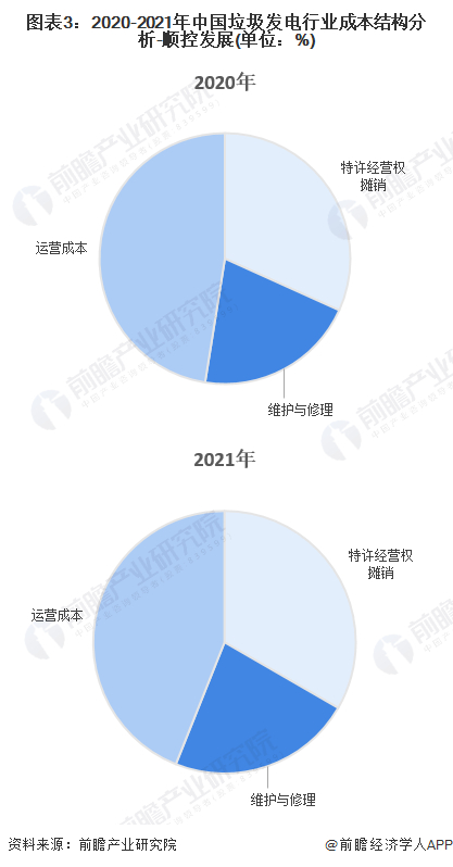 顺控发展近两年的垃圾发电制造的成本结构中,运营成本约占45%,特许经营权摊销约占30%,维护与修理约占20%。整体看来,运营成本在顺控发展垃圾发电业务中占比相对较高。