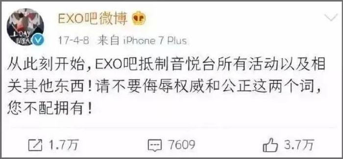 音悦台的官方微博今日发布一则消息: