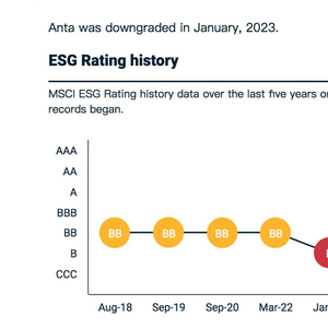 根据MSCI的评级数据,安踏的评级情况在纺织、服装和奢侈品行业被纳入评级范围的27家公司中排名靠后。