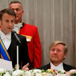 ▲11日,在访问荷兰期间,马克龙在阿姆斯特丹出席国宴时发表讲话。(法新社)