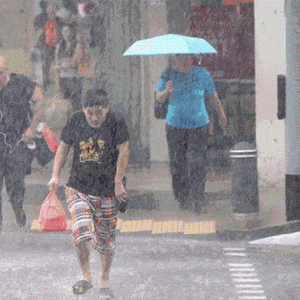 早上还是大太阳,中午就下大雨了,