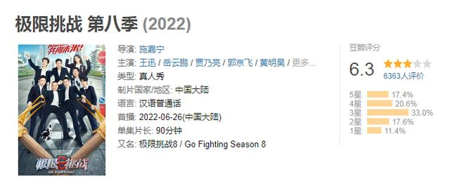 一个直观的例证是,最新一季的《奔跑吧》和《极限挑战》的豆瓣评分分别是6.4和6.3,而《极限挑战》第一、第二季的豆瓣评分可是达到了9.3和9.4。