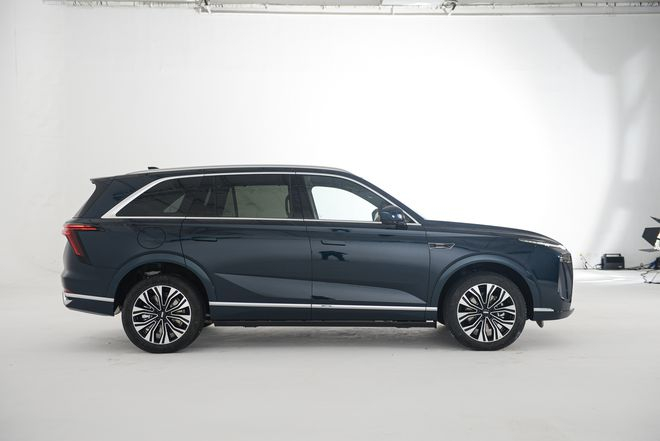 从侧面看,车身线条非常舒展,车顶尽可能保持平整,为第三排头部预留了足够空间。21英寸轮毂、隐藏式门把手与丰富的镀铬元素,配合二三排隐私车窗玻璃,增加了车辆的豪华感和私密感。