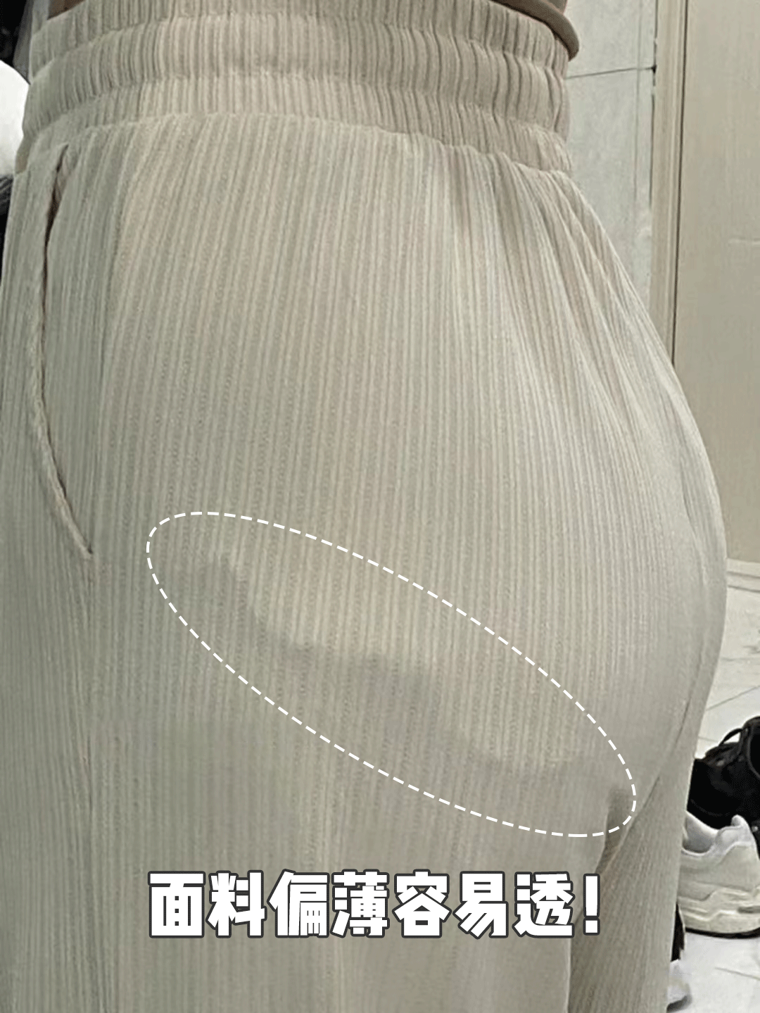 并且相比普通的裤子面料,虽薄但更有质感,还不透肉:
