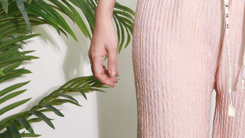 放心,它外面是褶皱纹理,但里层是平滑平坦的面料,穿着爽滑细腻,别提多舒服。