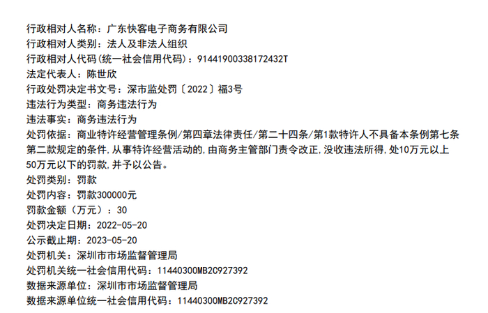 而作为第三方平台,KK集团还面临着市场口碑的意外滑坡。2022年5月,集团所属公司广东快客电子商务有限公司因违规从事商业特许经营,被深圳市市场监督管理局处以30万元罚款。此外,还有不少网友在公开投诉平台上透露,KKV门店存在产品真假混卖现象,市场口碑亟待重建。