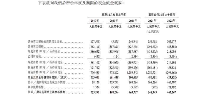 百亿负债之下,KK集团还面临着严峻的现金流紧张状况。招股书显示,报告期内,KK集团的现金和现金等价物分别为2.33亿元、1.68亿元、4.66亿元、4.63亿元。并不充足的账面现金,也给KK集团再次敲响警钟:如若不能找到新的盈利增长点,集团很有可能等不到IPO上市融资输血的那一天。