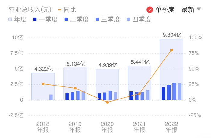 《科创板日报》4月14日讯(记者 郭辉)全球EEPROM产品头部企业聚辰股份昨日(4月13日)晚间披露的2022年度财报显示,公司全年营收实现9.80亿元,较2021年增长80.21%;归母净利润3.64亿元,同比增长226.81%。