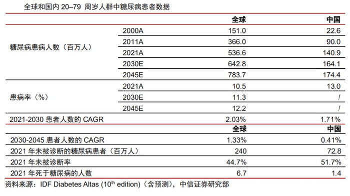 根据IDF Diabetes Atlas(10thedition)数据,2021年国内20-79岁人群中糖尿病患者人数为1.4亿,预计在2030年将达到1.6亿人,成为全球成人糖尿病患者最多的国家。从患者类型来看,GLP-1类药物和胰岛素类药物同样适用的II型糖尿病患者占比在90%左右。