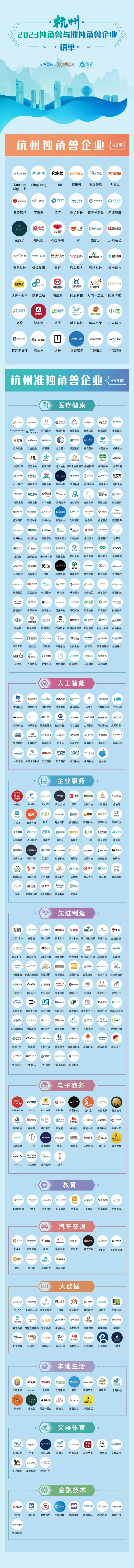 会上发布了《2023杭州独角兽&准独角兽企业榜单》,共有42家杭州独角兽企业(估值超过10亿美元)和354家杭州准独角兽企业(估值超过1亿美元)上榜,分别比去年增加3家和37家。此次入选的杭州准独角兽企业主要分布在医药健康、先进制造、人工智能、企业服务、电子商务、大数据等领域。