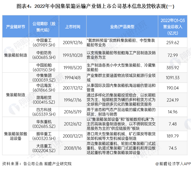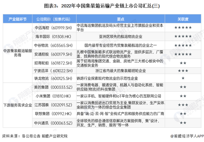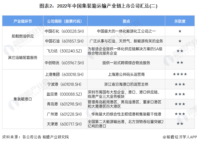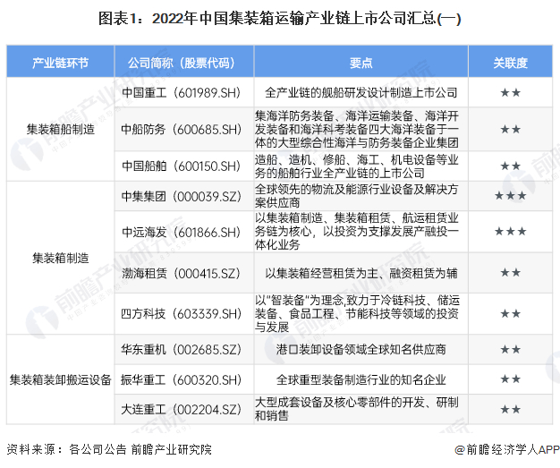 1、集装箱运输产业链上市公司汇总