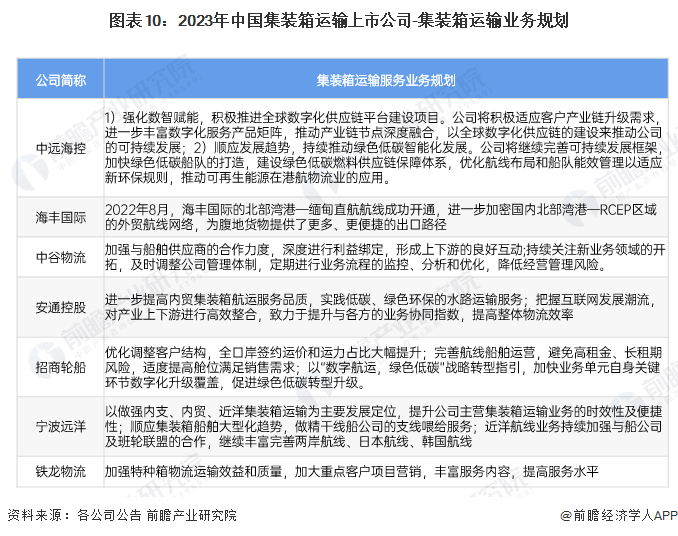4、集装箱运输行业上市公司集装箱运输服务业务规划对比