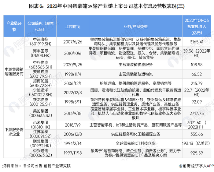 注:由于下游集装箱运输服务应用市场涉及企业众多,上述仅汇总了几家代表企业。