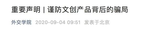 除了清华大学,近些年,外交学院、北京科技大学等高校都曾发文提醒,谨防文创骗局。