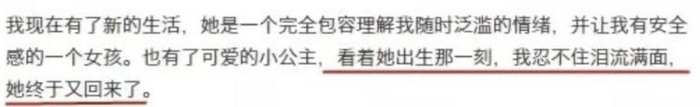 即使新生儿诞生中,文案里这句“她终于回来了”,非要把逝去的女儿和新出生的女儿捆绑在一起,让网友觉得观感并不好。