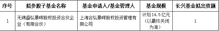 长兴基金本次公示的拟参股子基金基本情况见附件。拟参股子基金的具体名称以最终工商注册为准,基金管理人名称、基金规模、长兴基金出资额等以最终签订的协议为准。