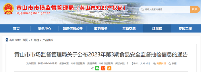 安徽省黄山市市场监督管理局公布2023年第3期食品安全监督抽检信息