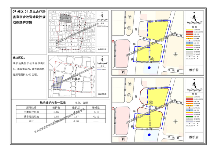 位于泰华街以东、水源街以西、合作路两侧,总用地面积6.60公顷。规划调整后,二类居住用地减少0.12公顷。