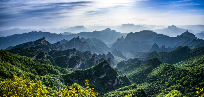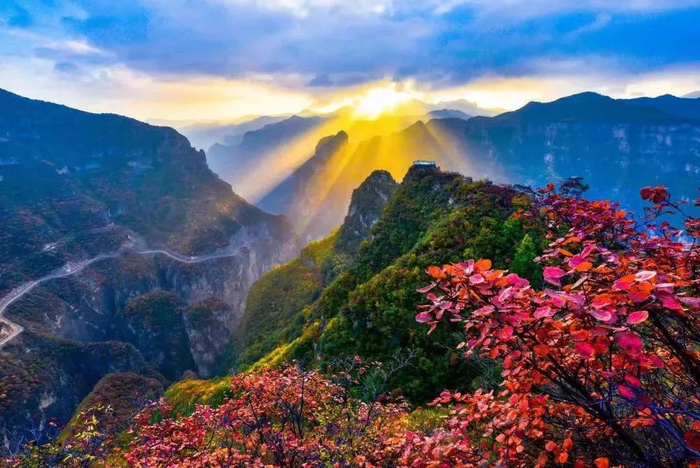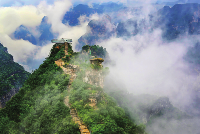 壁立千仞的黄崖洞,云蒸雾罩的紫团山