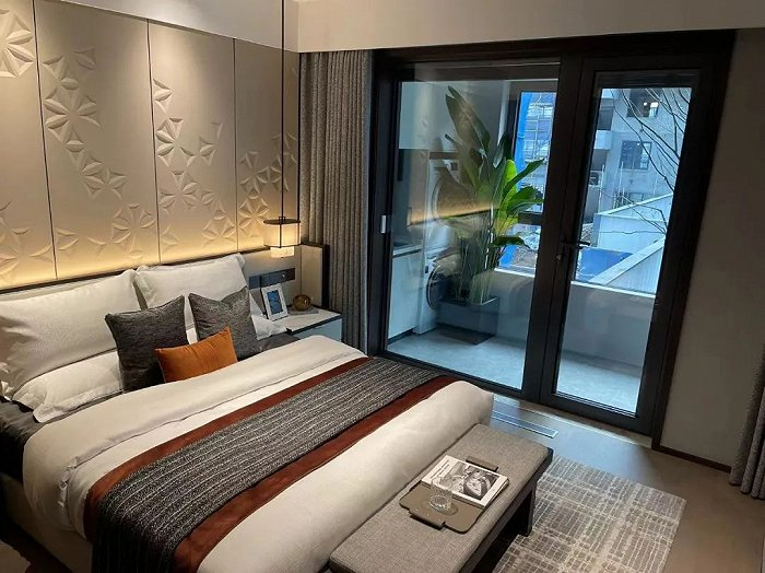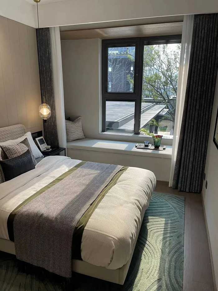 主卧套房设计,有独立卫生间,保证了私密性。项目的装标比较高,三大件采用大金中央空调、菲斯曼/AO史密斯地暖、百朗/爱迪士新风系统,另外厨卫等均采用了西门子、杜拉维特、科勒等一线品牌。