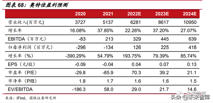 公司系宁德时代储能温控重要供应商。公司 2017 年起开始研发新能源车动力电 池领域的液冷温控技术,并逐渐与宁德时代建立紧密合作。公司通过技术迁移,发力 储能液冷温控系统,已成为宁德时代储能温控领域的重要供应商。专注储能热管理的 孙公司埃泰斯新能源营收高速增长,其收入已相当于奥特佳整体收入水平的约 10%。储能热管理技术领先。公司储能热管理产品核心部件均自研或自产,液冷技术的 性能优越性明显,在大型储能、车用电池控制器等领域均实现较深的技术积累;公司 海外布局较早,已启动拓展海外电池终端客户的储能热管理业务,取得了明显成效。积极拓展新能源汽车压缩机业务。公司大力开拓新能源汽车的电动压缩机市场, 主要客户覆盖长安、吉利、比亚迪等知名厂商。公司电动压缩机订单饱满,预计 23 年 3 月份具备 180 万台产能,6 月份接近 200 万台产能。公司电动压缩机产品已出 口到印度,供应塔塔汽车。23 年计划向大众汽车的德国工厂 MEB 电动车平台供货, 并以此为基础向大众汽车在其他国家的工厂供货。