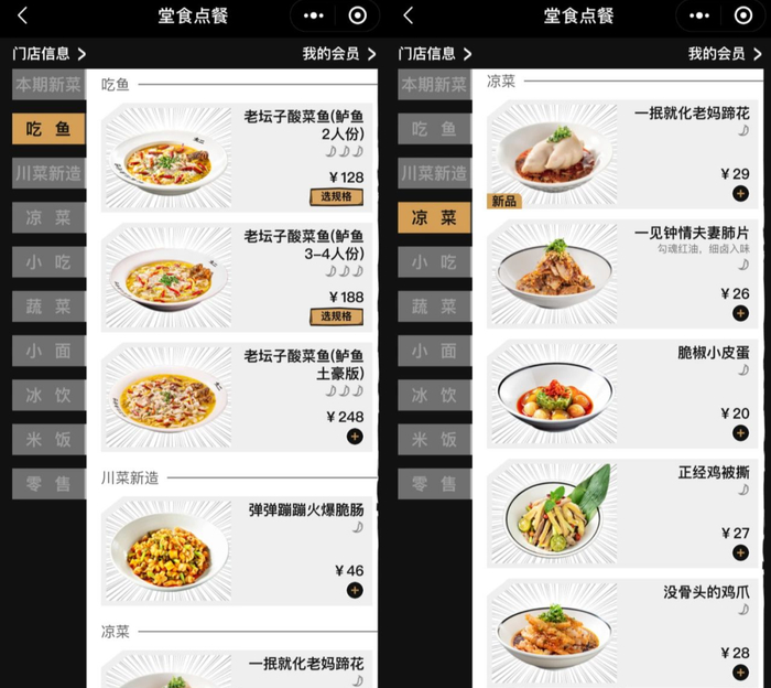 据盐财经记者的观察,目前,太二酸菜鱼的SKU在20左右,其中包括了5种凉菜、6种冰饮,都是备菜较快的产品。