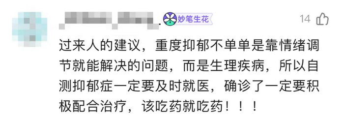 最近在丁香医生 App 里上线了抑郁症测试,是国际通用的抑郁自评量表,用来评估抑郁的严重程度,底下收到了很多用户的回复。其中有一条特别中肯: