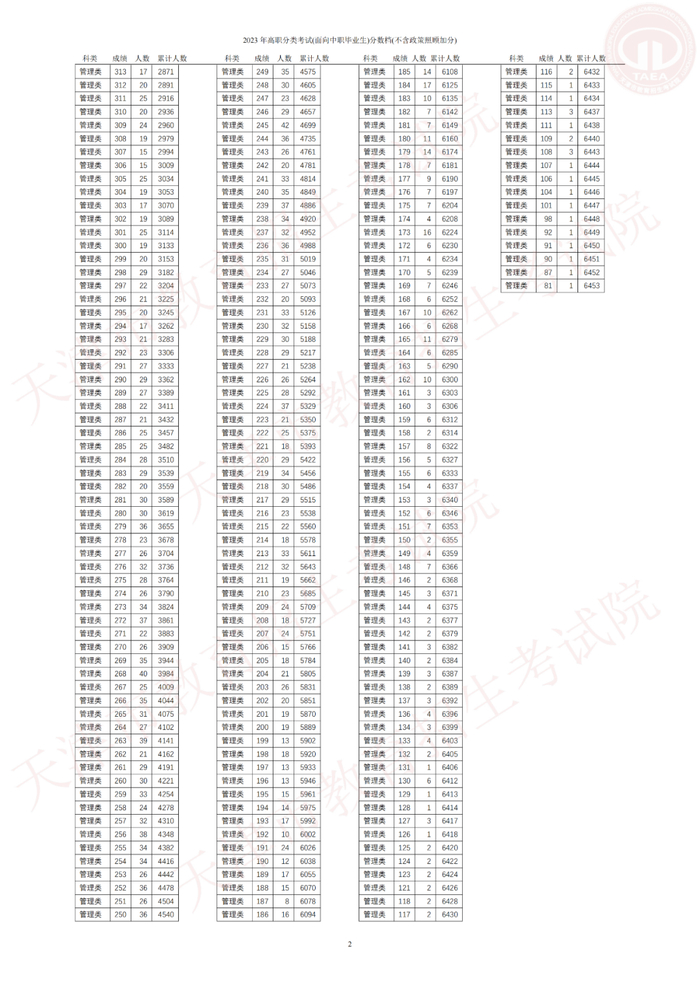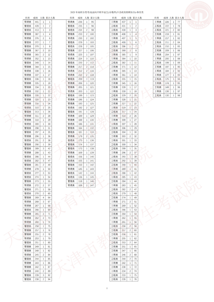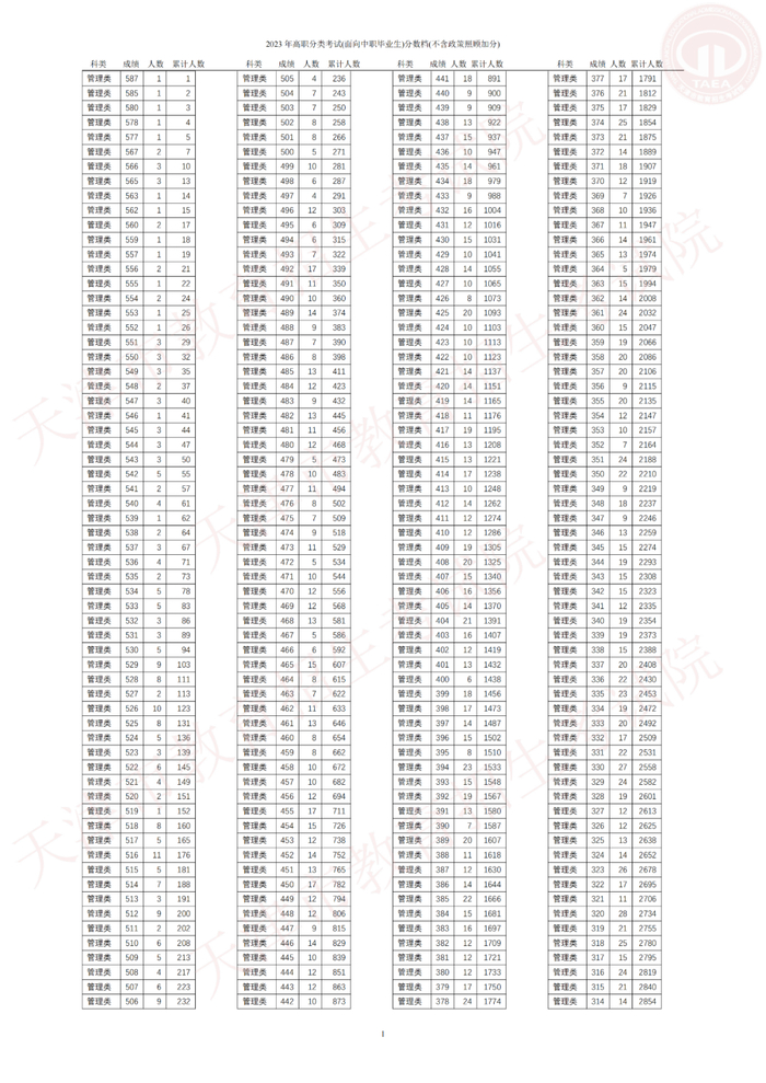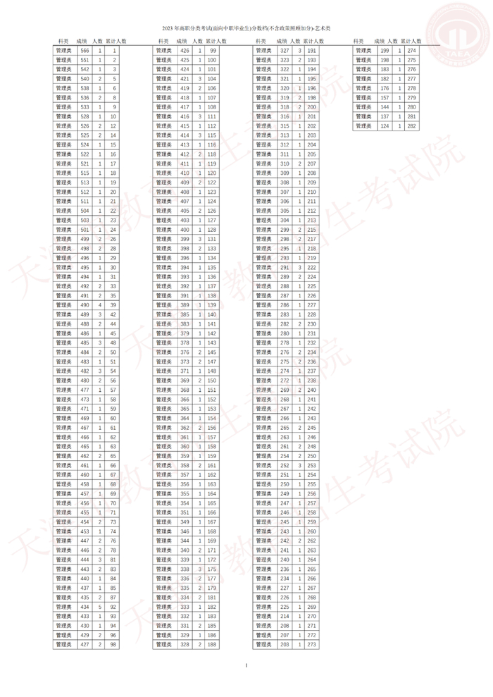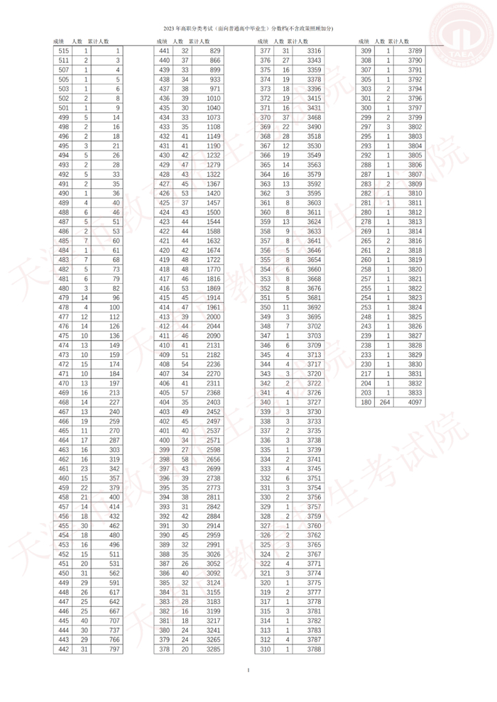 1.2023 年高职分类考试(面向中职毕业生)分数档(不含政策照顾加分)