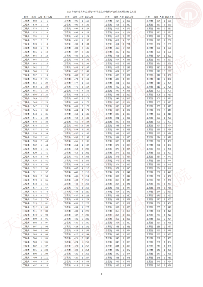 2.2023年高职分类考试(面向中职毕业生)分数档(不含政策照顾加分)-艺术类