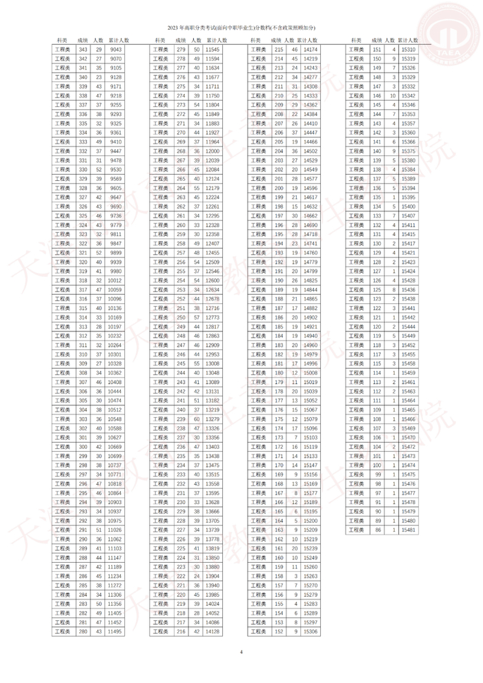 4.2023年高职分类考试(面向普通高中毕业生)分数档(不含政策照顾加分)