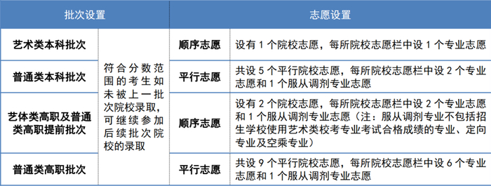 考生在填报普通类高职批次平行院校志愿时,应将9个平行志愿用足用好,可以按照“冲、稳、保”的策略进行填报,最前面3个志愿填报自己有希望“跳一跳”够得着的理想院校,中间3个志愿填报与自身水平大体相当或略低于自身水平的院校,最后3个志愿要填报近年来志愿生源不足的院校作为“保底”。若考生填报的院校志愿所数少,会存在因为考试成绩达不到招生院校的要求而不能被投档的风险。考生应认真考虑填写服从院校专业调剂,若不服从院校专业调剂,会存在因为考试成绩或身体条件等达不到所报专业的要求,而被退档的较大风险。